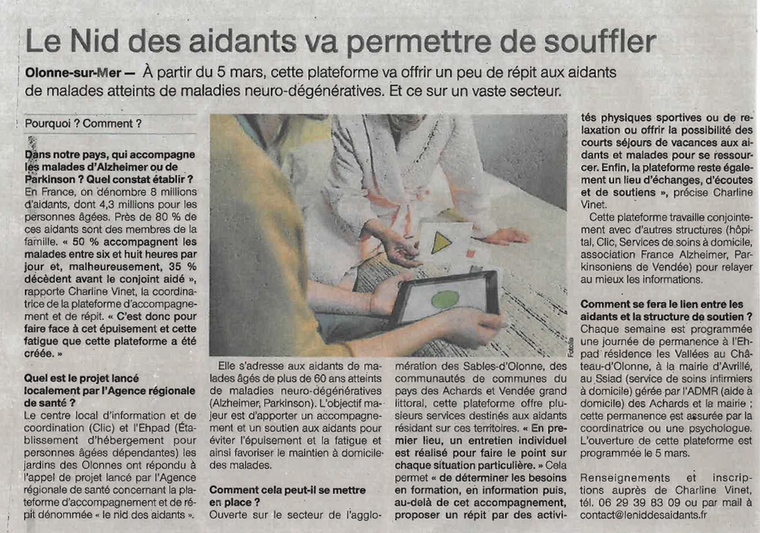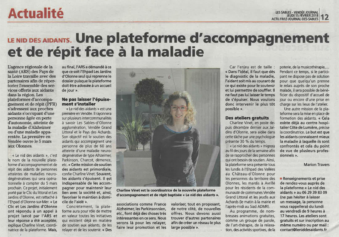 Article dans le Journal des Sables du 15 Février 2018